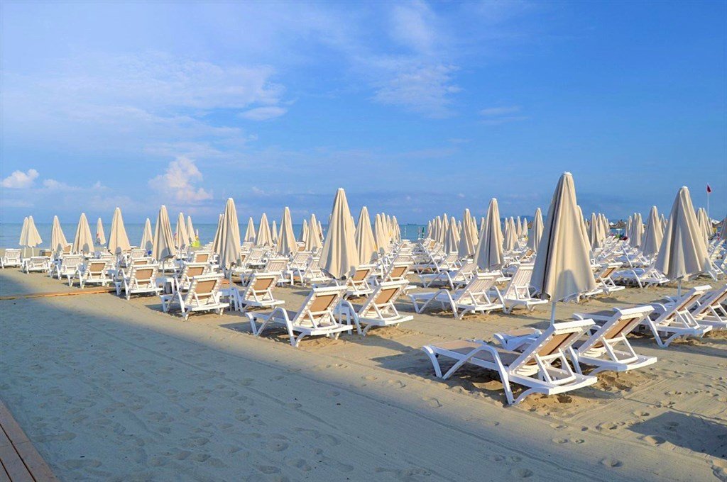 Közvetlenül a szálloda előtt található homokos, fokozatosan mélyülő strand, megközelíthető a sétányon keresztül, napozóágyak és napernyők a hotel kijelölt területén térítés mentesen vehetők igénybe.